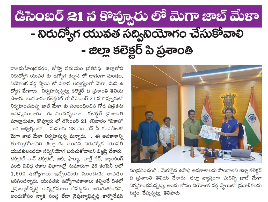 MINI JOB MELA AT VIKASA,COLLECTORATE,KAKINADA ON 02-03-2026 BY 9AM