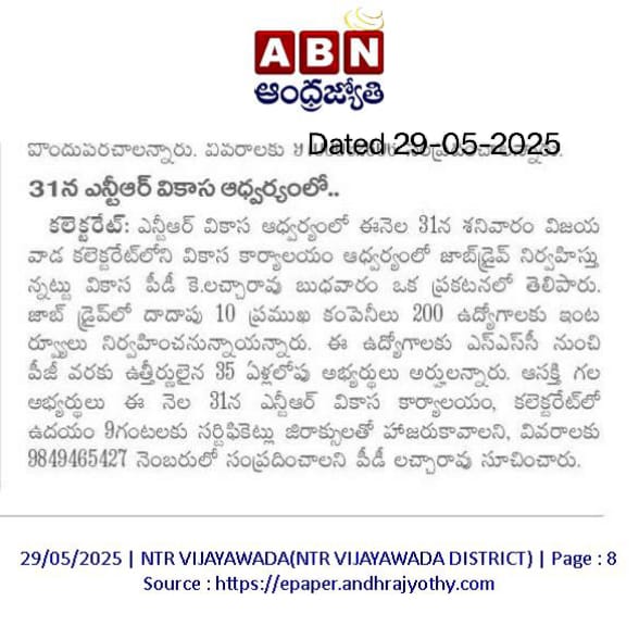 MINI JOB MELA AT VIKASA,COLLECTORATE,KAKINADA ON 12-01-2026 BY 9AM
